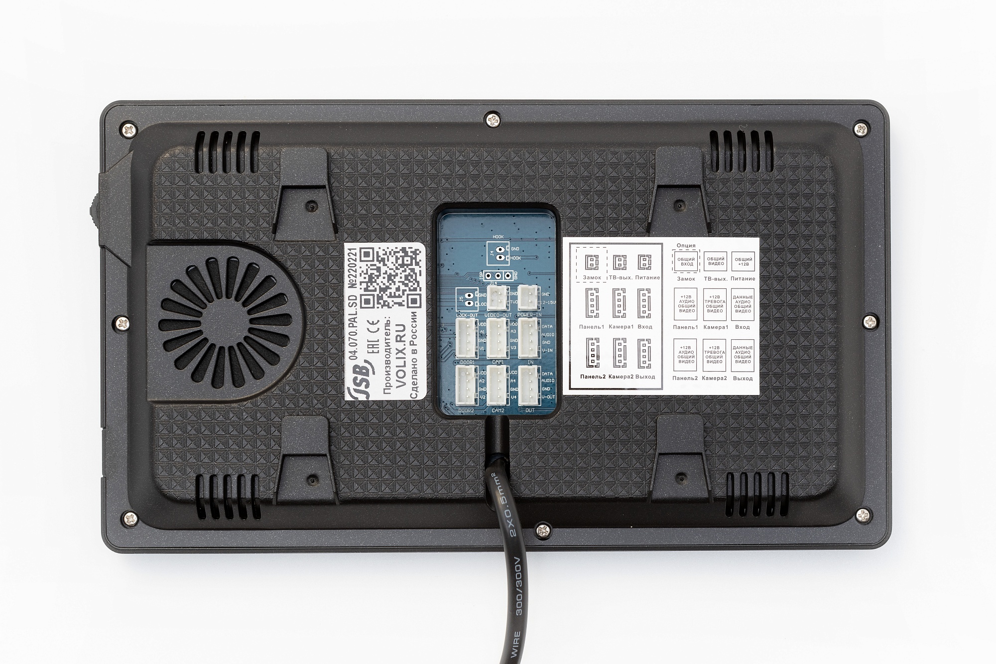 Монитор цветного видеодомофона 7" TFT LCD, PAL, разрешение 1024х600, hands-free. Максимальное подключение: до 2-х вызывных панелей, до 2-х видеокамер, интерком до 6-ти мониторов. Слот для SD-карты 32 Гб класс 10 и выше. Механические кнопки управления, накладное крепление, 220В (встроенный Б П) + возможность питания от 12V, -10...+50°C, 203х116х18 мм.