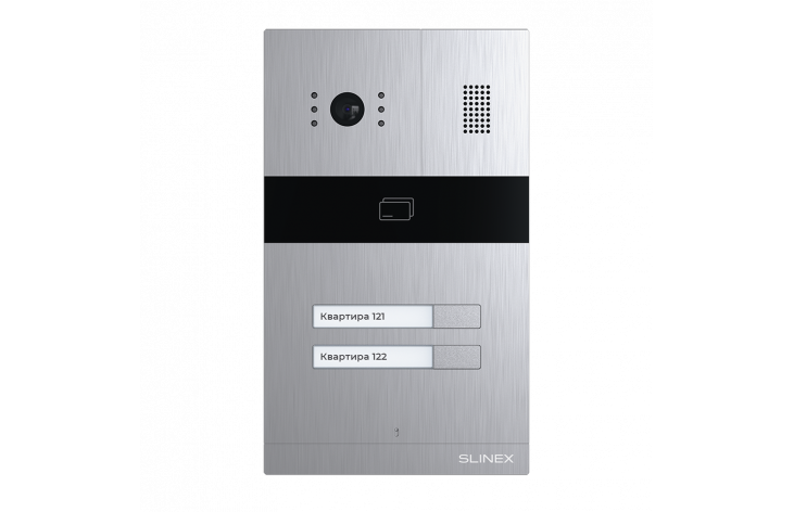 Slinex МA-02CRHD– современная панель в стильном форм-факторе и с широкими функциональными возможностями. Данная вызывная панель проста и удобна в эксплуатации.AHD вызывная видеопанель на 2 абонента со встроенным контроллером и комбинированным считывателем бесконтактных карт. Цветная матрица CMOS, разрешение 2,0 Мп (AHD) / 1 Мп (AHD) / 960 ТВЛ (CVBS), угол обзора: 115° по горизонтали, минимальная освещенность: 0,01 Люкс (ИК подсветка до 1,5 м). Кнопка переключение режима камеры. Механический ИК фильтр. Встроенныи? комбинированныи? считыватель бесконтактных карт: EM-Marin и Mifare. Количество идентификаторов: 248 шт. Выход Wiegand-26. Подсветка именных табличек абонентов. НО/НЗ контакт реле для подключения электромеханического или электромагнитного замка. Возможность подключить любой 4-х проводной домофон. Класс защищенности: IP65, температура эксплуатации: -40...+65 °С. Питание: +12 В (от монитора). Размеры: 110?186?32 мм. Врезная установка.