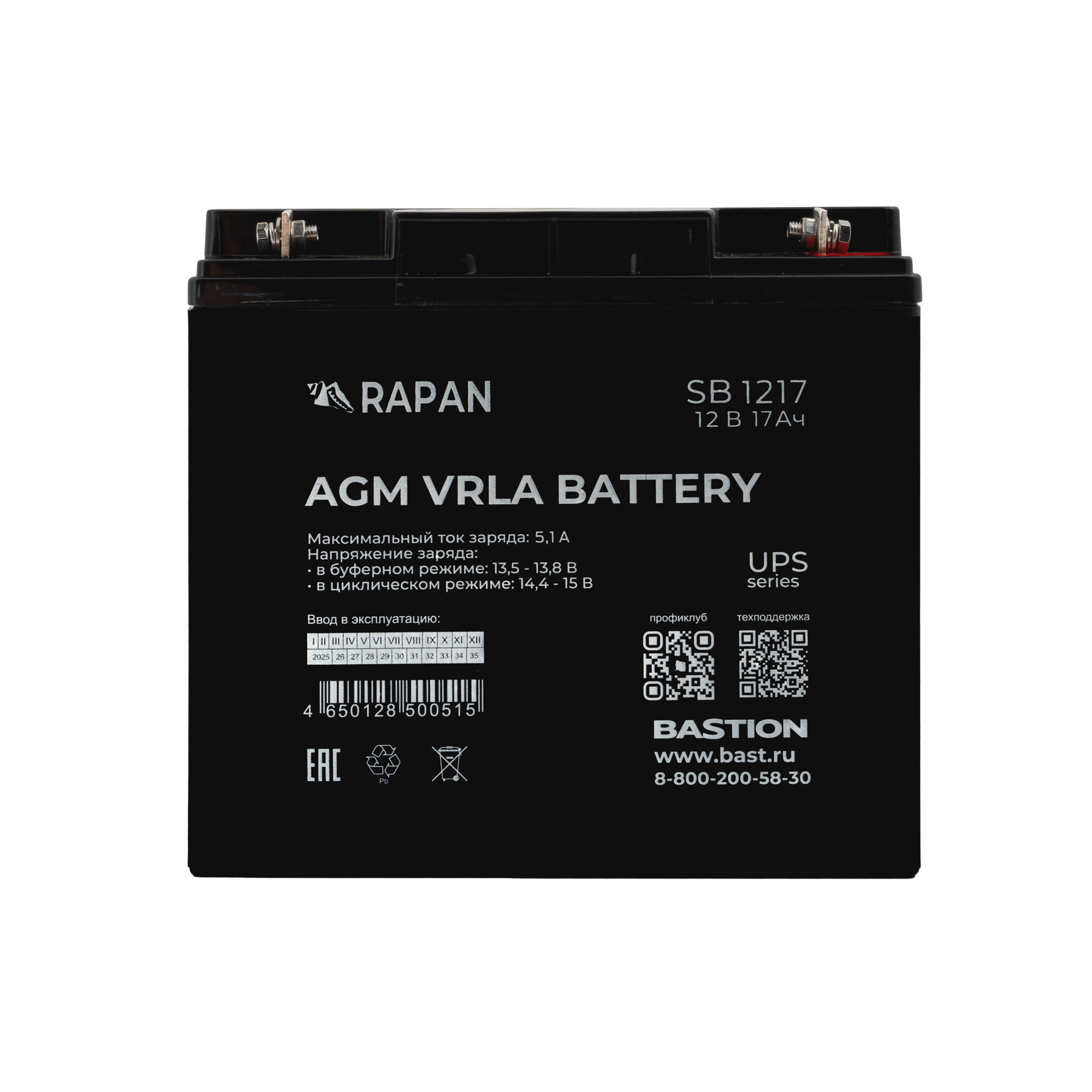 Внутреннее сопротивление, мОм (при 25°С и полностью заряженной АКБ)