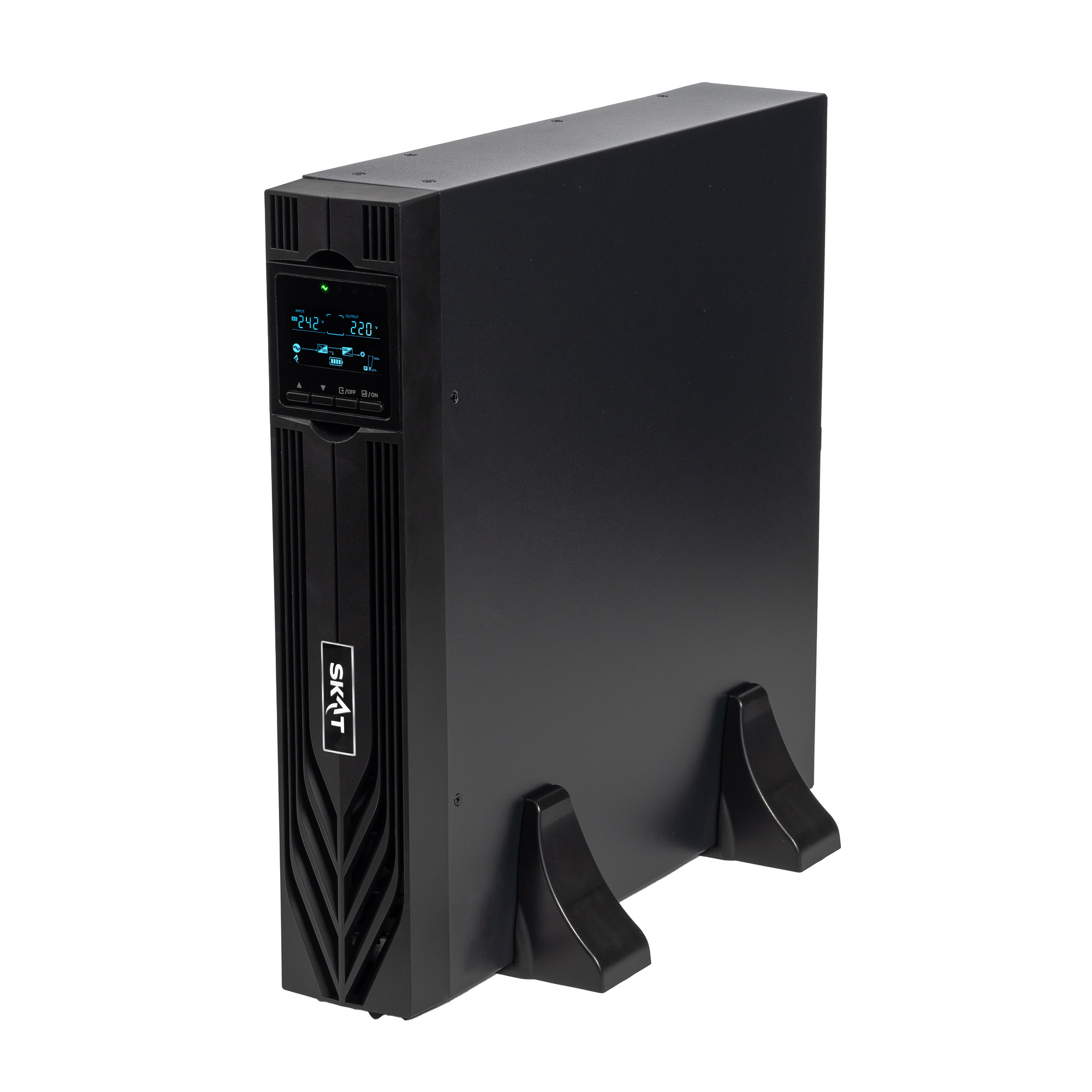 нижний порог перехода в режим работы от АКБ при нагрузке 0%…50% 110 ± 5 % при нагрузке 100%…50% 176 ± 5 %; нижний порог возврата в режим работы от сети при нагрузке 0%…50% 120 ± 5 % при нагрузке 100%…50% 186 ± 5 %; верхний порог перехода в режим работы о