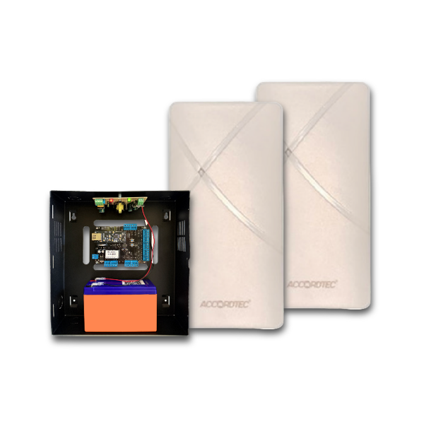Состав комплекта. В комплект входят все необходимые компоненты для расширения вашей системы: высокопроизводительный контроллер СКУД AT-ACS01, интегрированный в удобный бокс, а также два бесконтактных считывателя AT-PR500EM GR, обеспечивающих надежное распознавание идентификаторов.