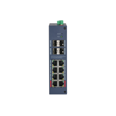 Порт 1–8: 8 × RJ45 10/100/1000 Мбит/с (PoE) Порт 9–12: 4 × SFP 100/1000 Мбит/с (восходящий канал)