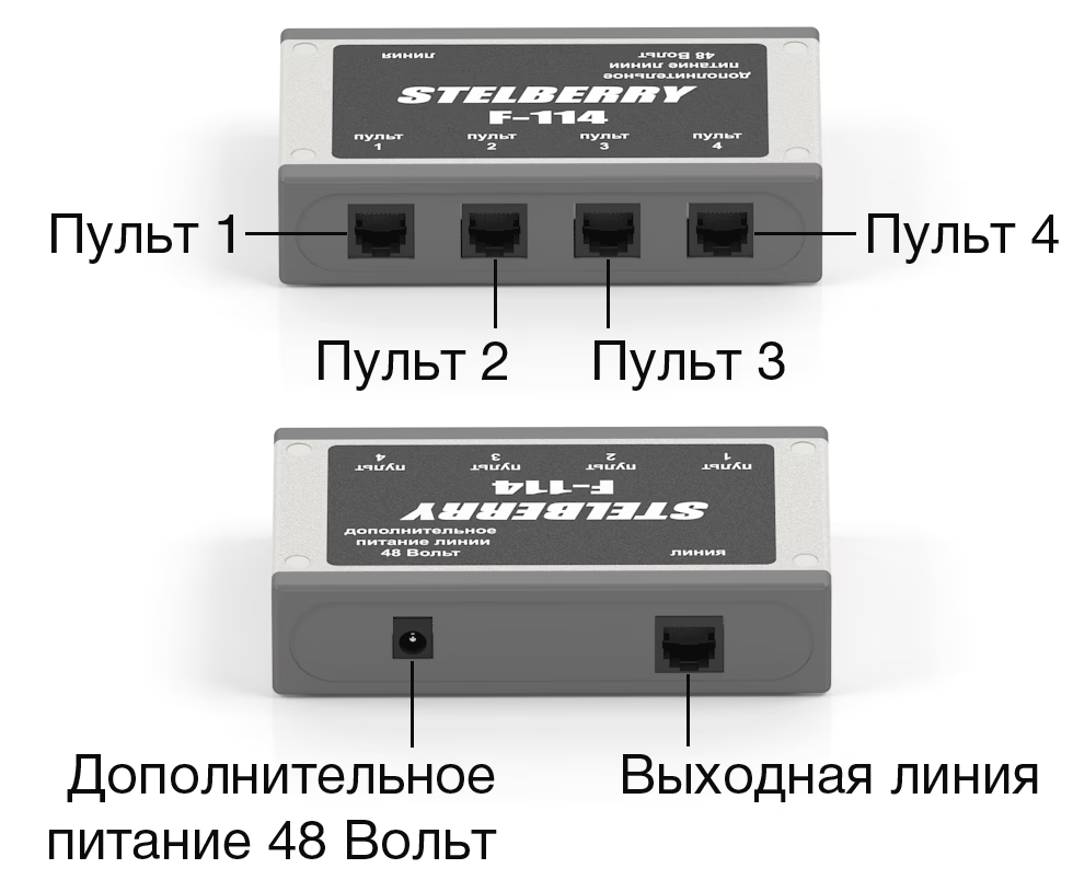 - Возможность производить аудиотрансляцию и громкие объявления с любого из однозонных пультов STELBERRY серии F