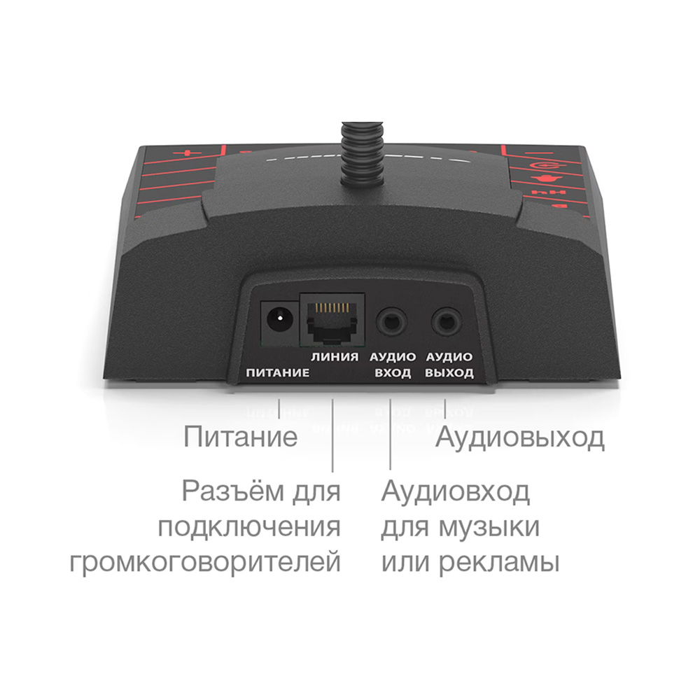 Микрофонная стойка пульта оснащена подсветкой и направленным HD-микрофоном с широким динамическим диапазоном.