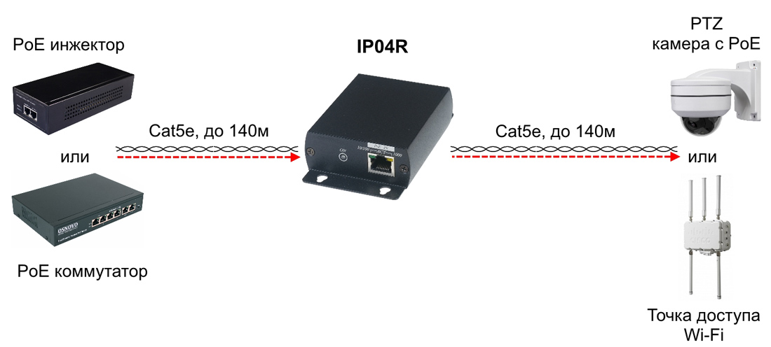 IP04R Удлинитель PoE af/at/bt по витой паре до 280м (до 48.86Вт)